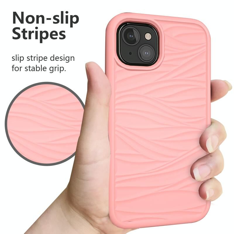 For iPhone 13 mini Wave Pattern 3 in 1 Silicone + PC Shockproof Protective Case (Rose Gold)