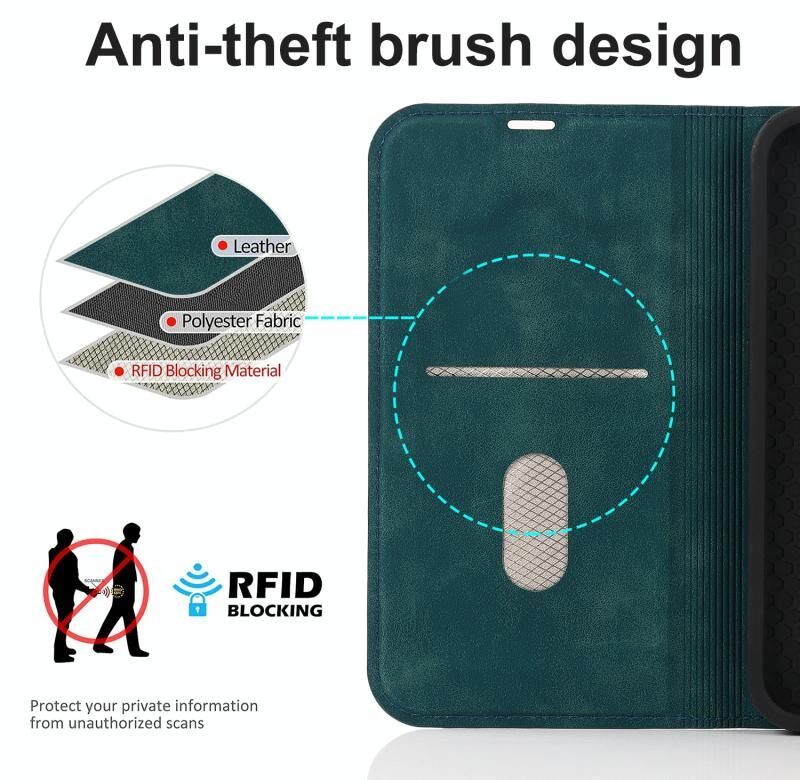 For iPhone 13 mini Wireless Charging Magsafe Leather Phone Case (Blue)