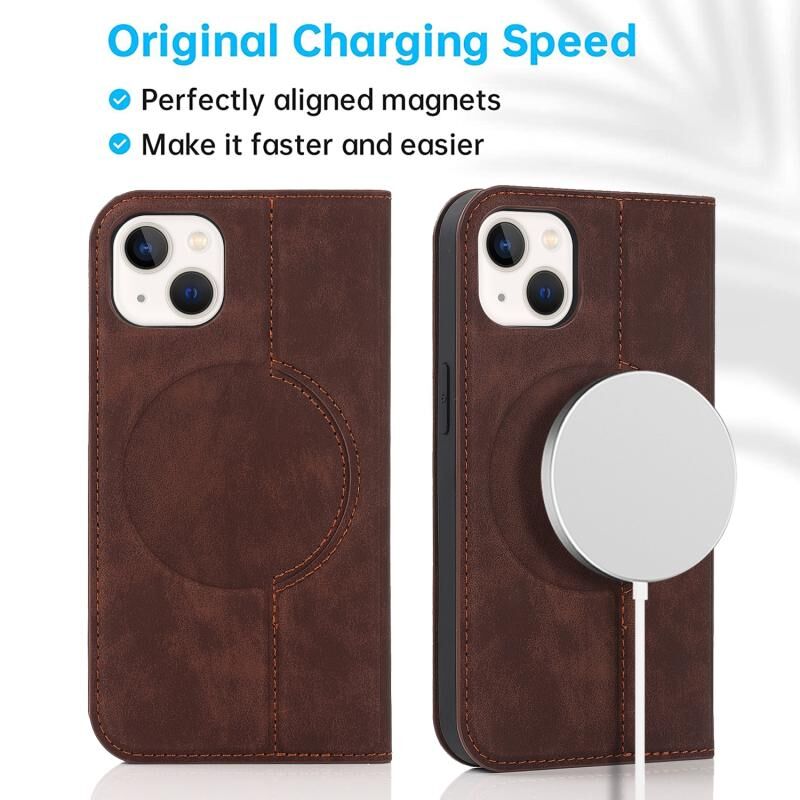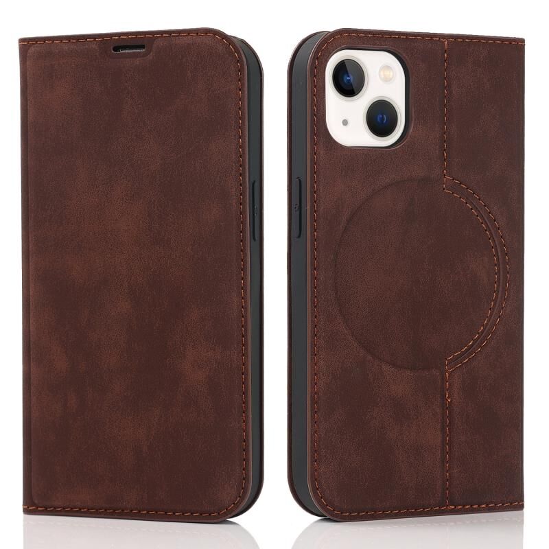 For iPhone 13 mini Wireless Charging Magsafe Leather Phone Case (Brown)