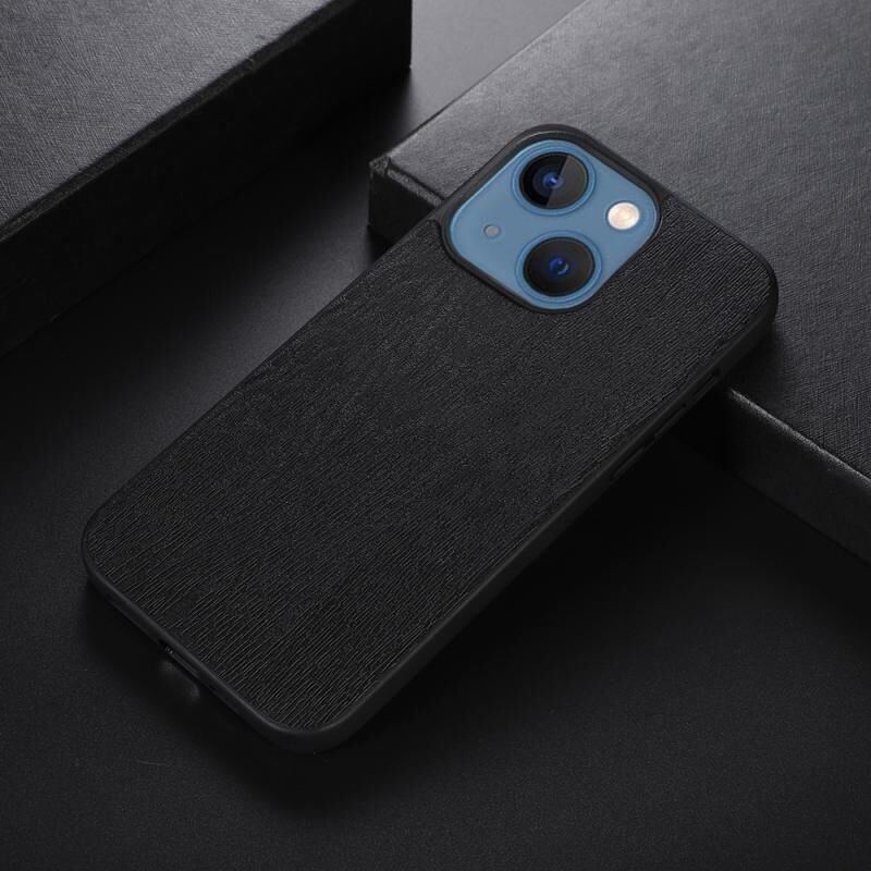 Θήκη τηλεφώνου για iPhone 13 mini με υφή ξύλου από PU (Μαύρο)
