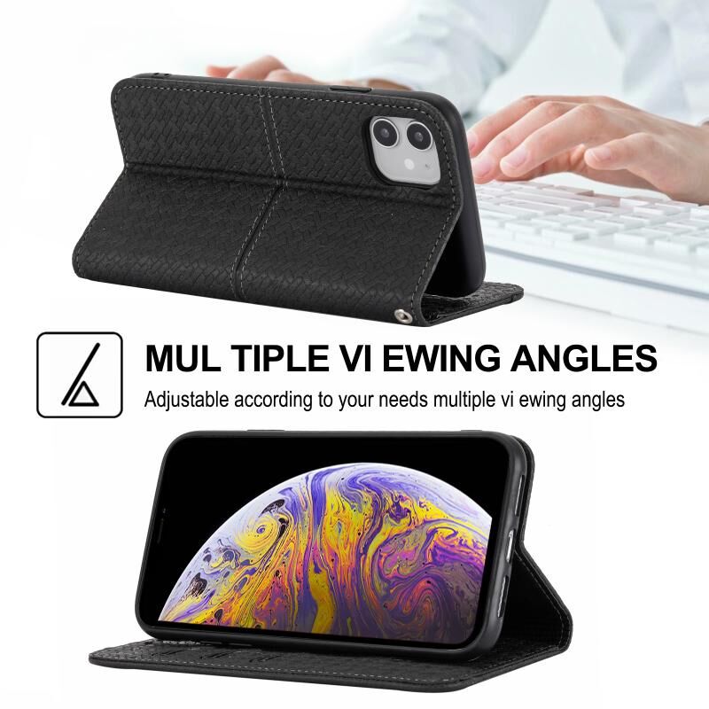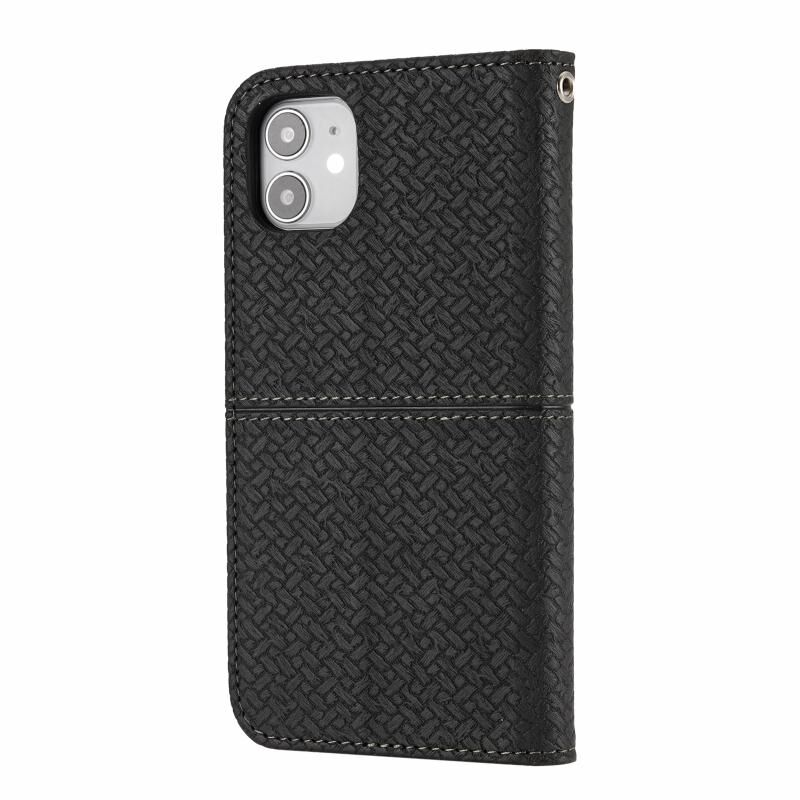 For iPhone 13 mini Woven Texture Stitching Magnetic Horizontal Flip PU Leather Case with Holder & Card Slots & Wallet & Lanyard (Black)