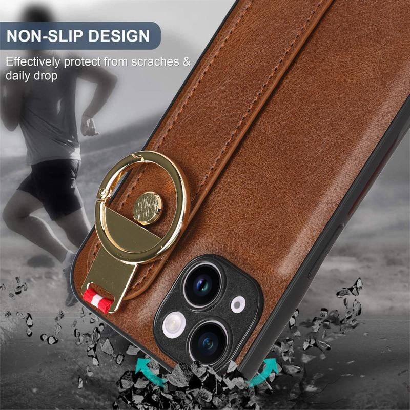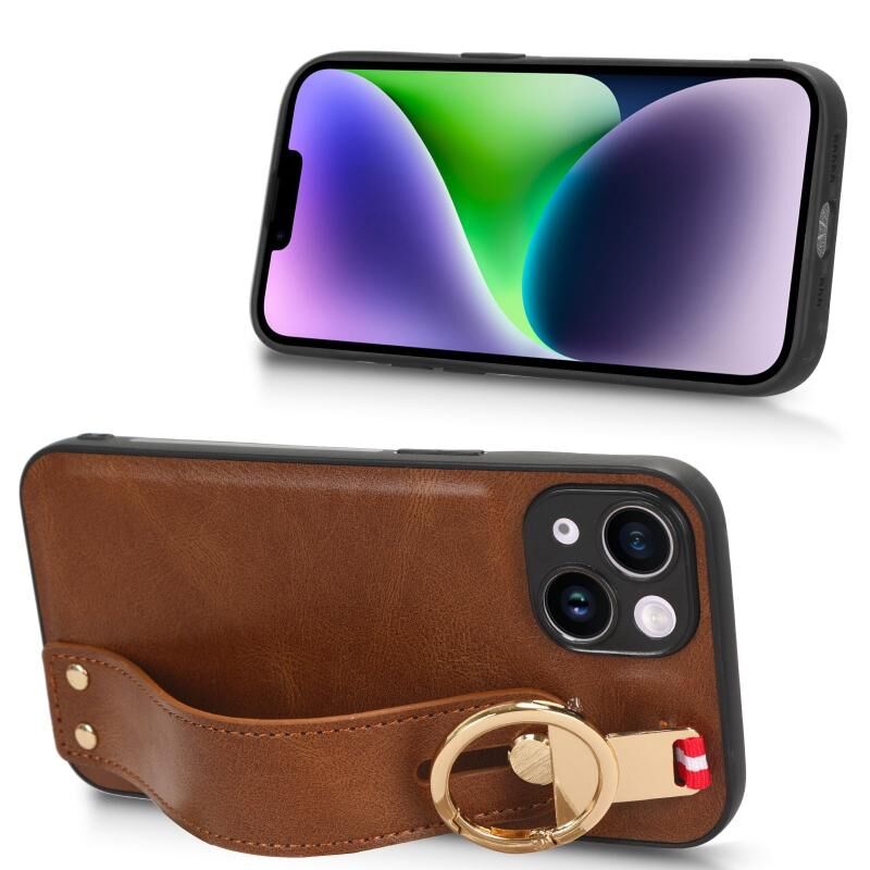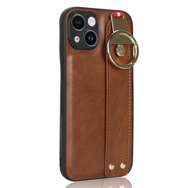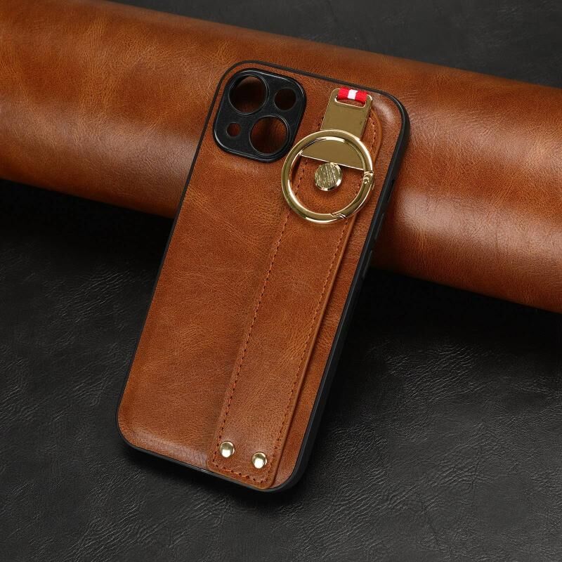 For iPhone 13 mini Wristband Leather Back Phone Case(Brown)