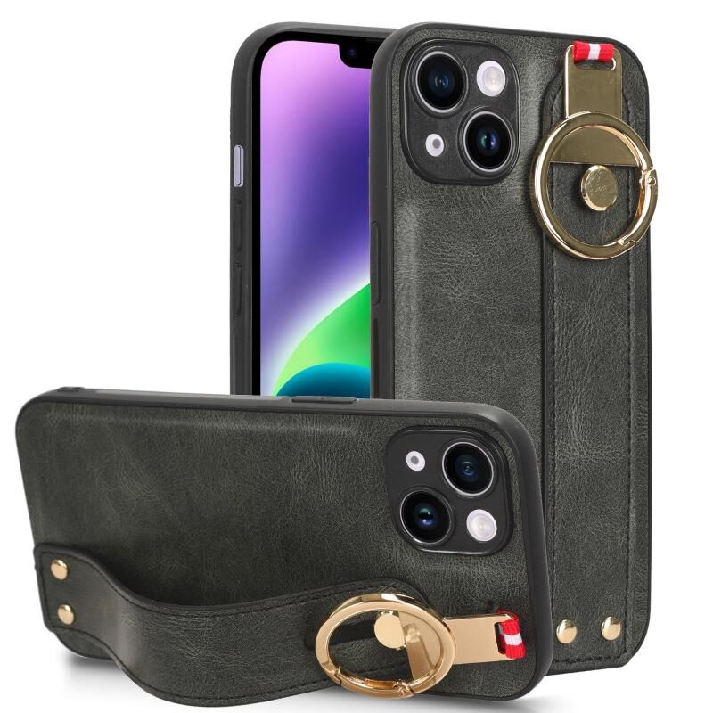 For iPhone 13 mini Wristband Leather Back Phone Case(Green)