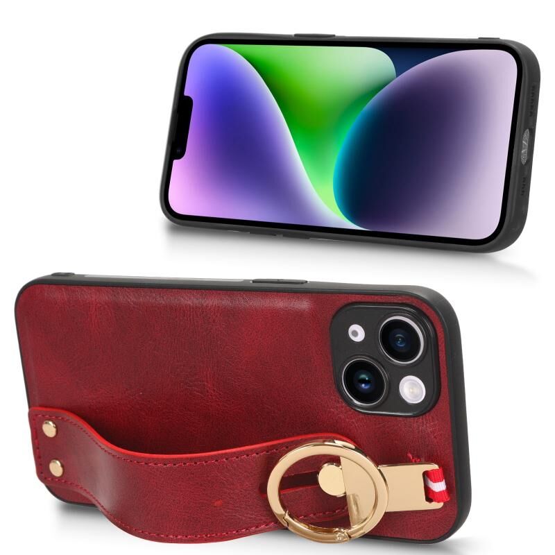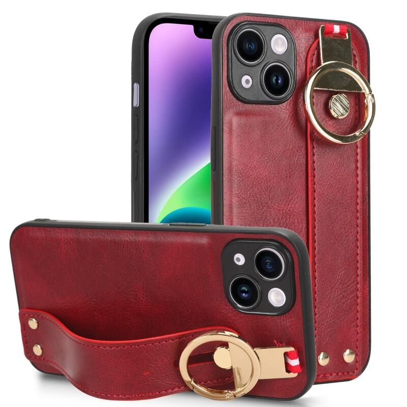 For iPhone 13 mini Wristband Leather Back Phone Case(Red)