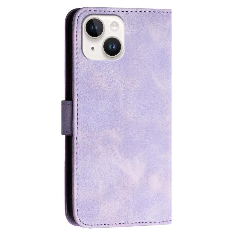 Θήκη τηλεφώνου τύπου flip από δέρμα με ανάγλυφο σχέδιο πλέγματος και πεταλούδας για iPhone 13 mini YX0080 με κορδόνι (ανοιχτό μωβ)