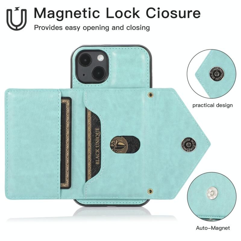 For iPhone 13 Multi-functional Cross-body Card Bag TPU+PU Back Cover Case with Holder & Card Slot & Wallet(Green)