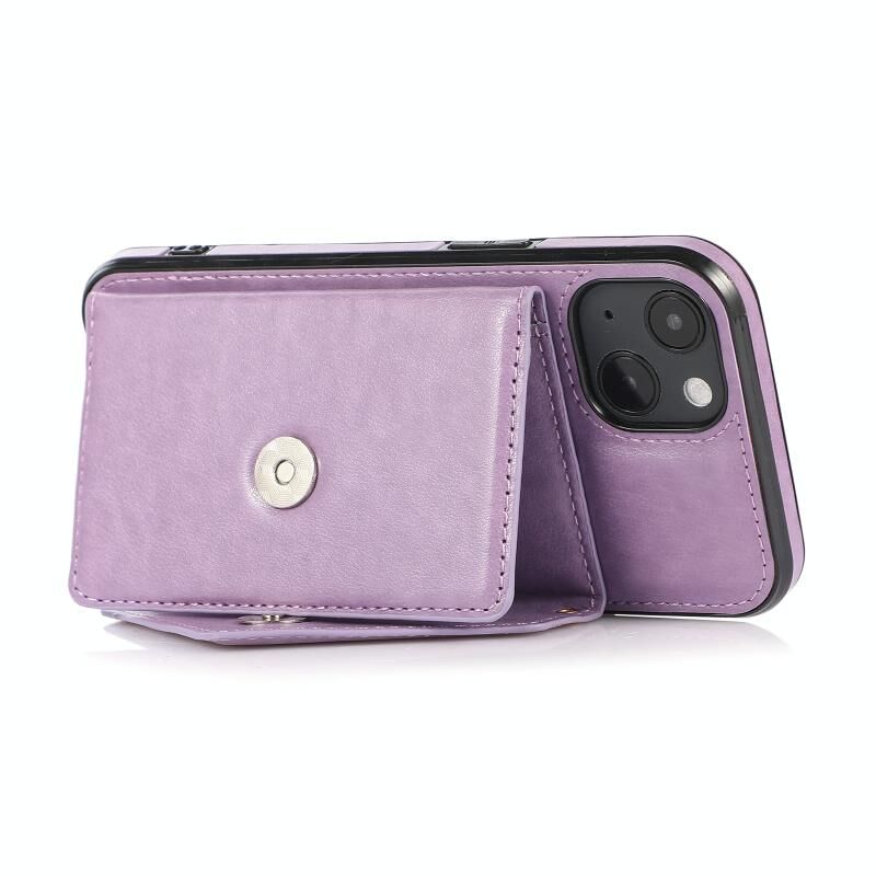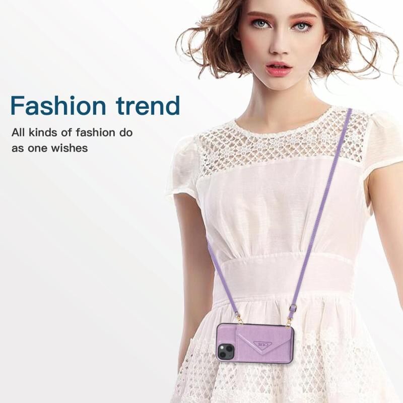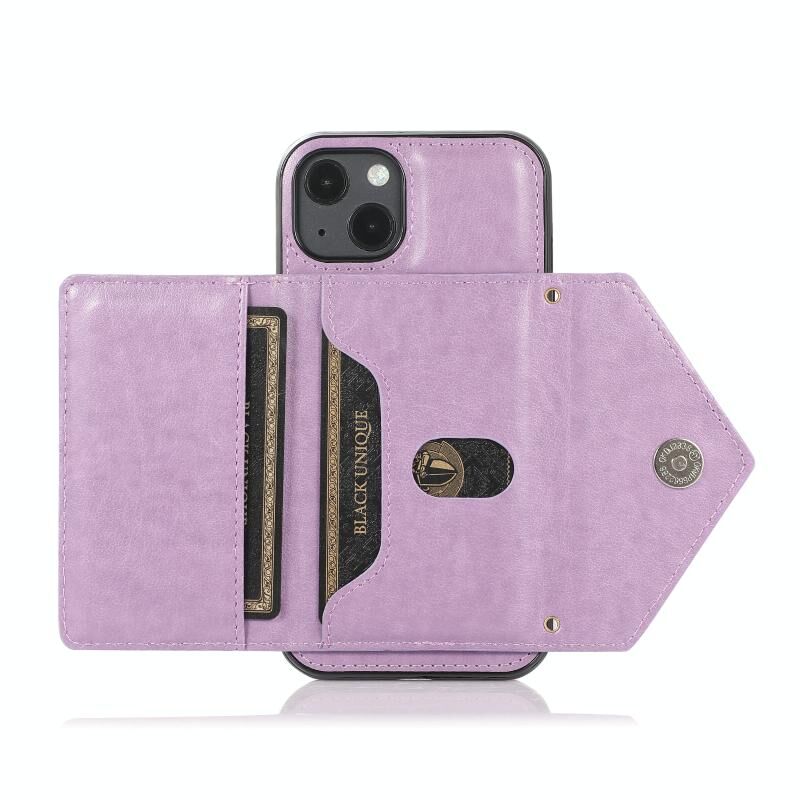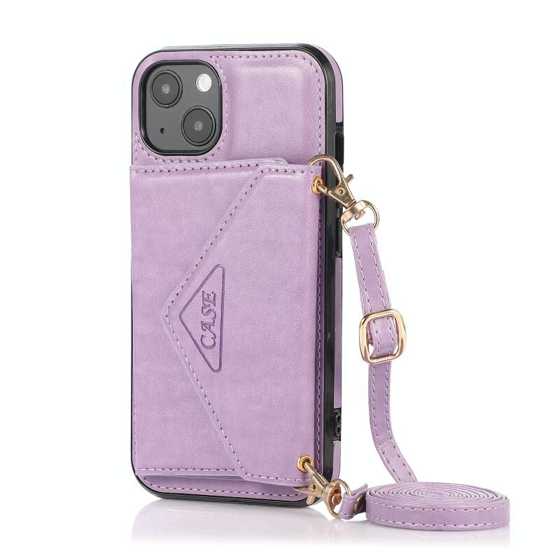 For iPhone 13 Multi-functional Cross-body Card Bag TPU+PU Back Cover Case with Holder & Card Slot & Wallet(Purple)