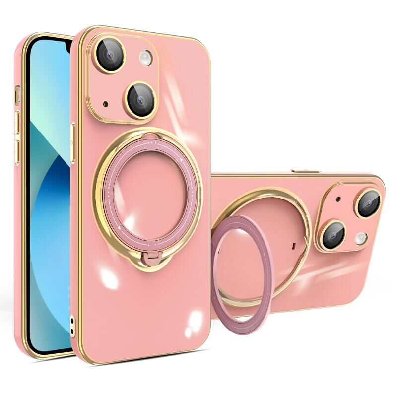 For iPhone 13 Multifunction Electroplating MagSafe Holder Phone Case(Pink)