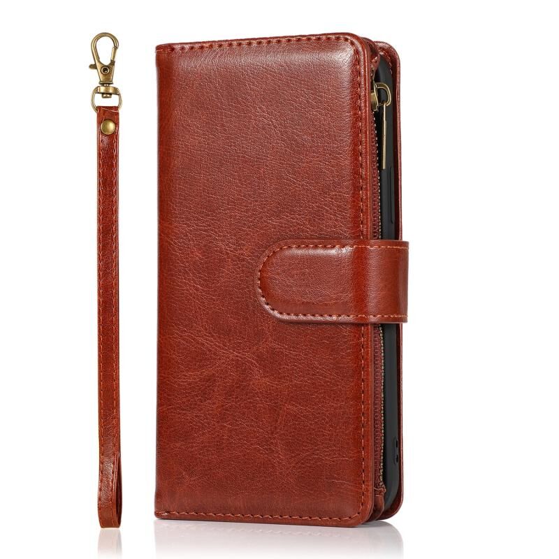 For iPhone 13 Multifunctional Crazy Horse Texture Horizontal Flip Leather Case with 9 Card Slot & Holder & Zipper Wallet & Lanyard(Brown)
