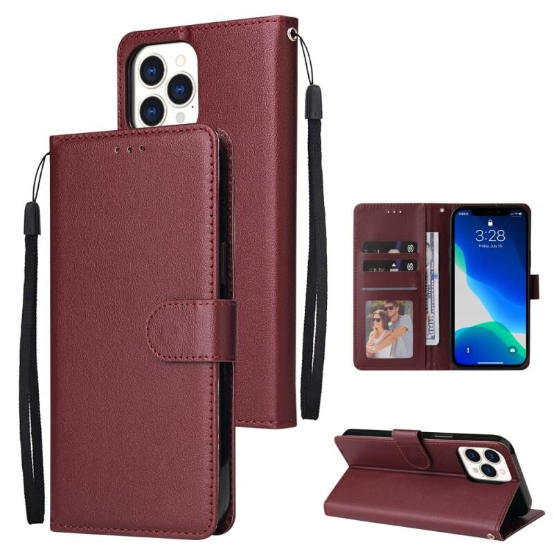 Θήκη για iPhone 13 Πολυλειτουργική Οριζόντια Δερμάτινη με Αναδιπλούμενο Σχεδιασμό, με Τρεις Θήκες για Κάρτες & Στήριξη & Φωτογραφικό Κορνίζα & Λουρί (Καφέ)