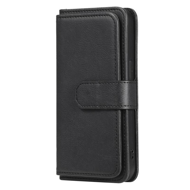 For iPhone 13 Multifunctional Magnetic Copper Buckle Horizontal Flip Solid Color Leather Case with 10 Card Slots & Wallet & Holder & Photo Frame(Black)