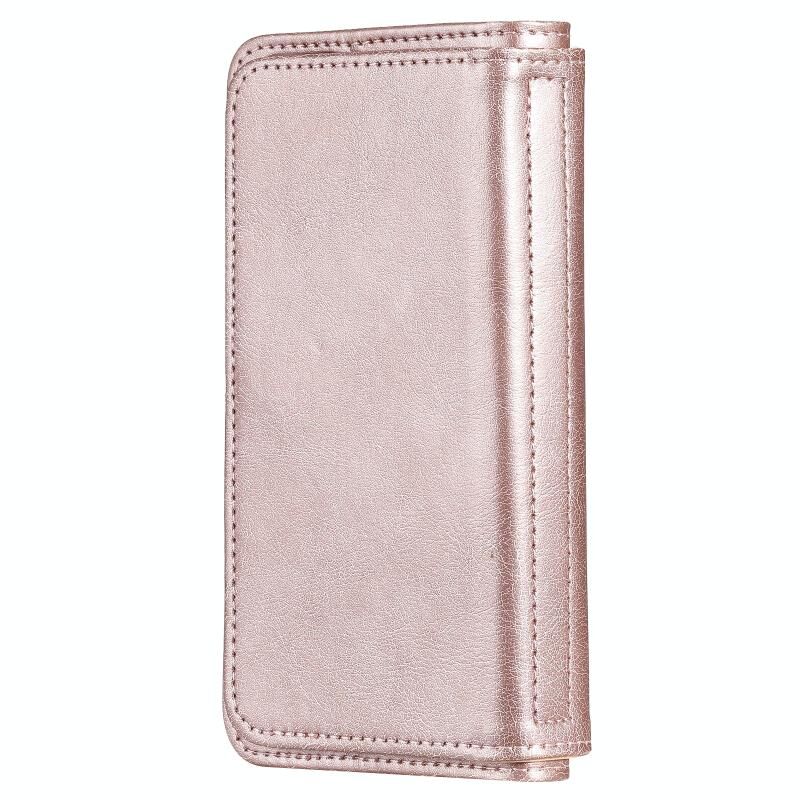For iPhone 13 Multifunctional Magnetic Copper Buckle Horizontal Flip Solid Color Leather Case with 10 Card Slots & Wallet & Holder & Photo Frame(Rose Gold)