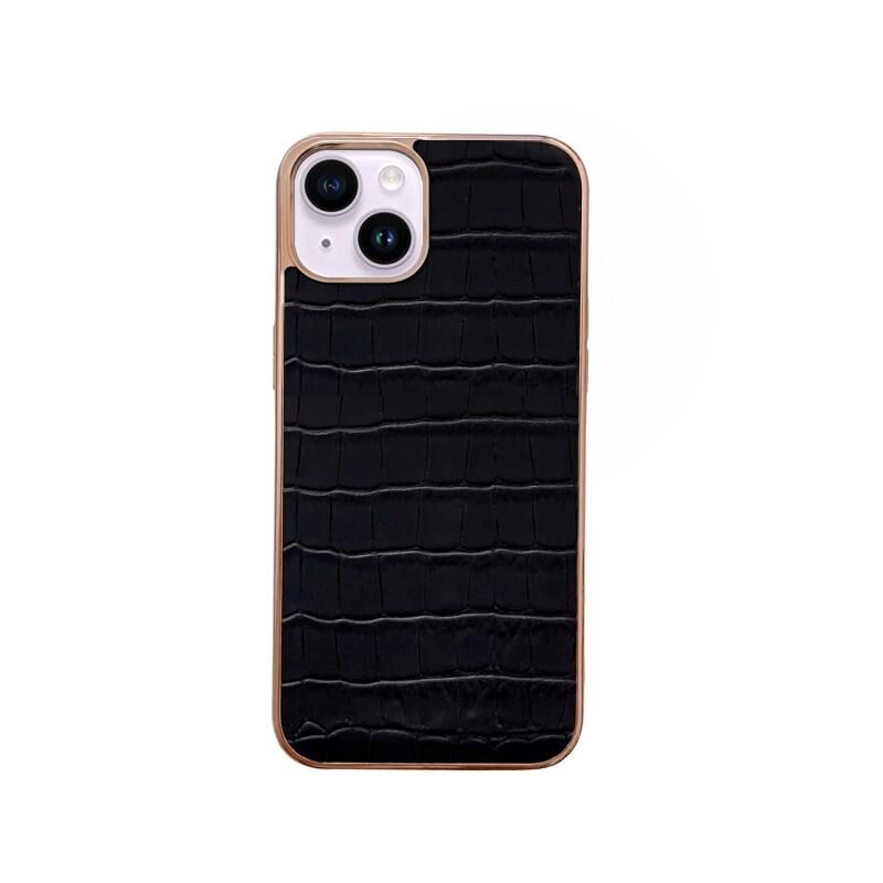 Θήκη τηλεφώνου από γνήσιο δέρμα με υφή κροκόδειλου και νανο-επίχρυση για iPhone 13 (Μπλε)