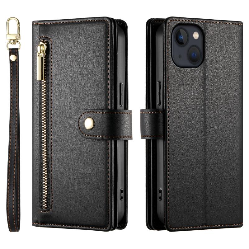 For iPhone 13 Nine Card-slot Zipper Wallet Bag Leather Phone Case(Black)