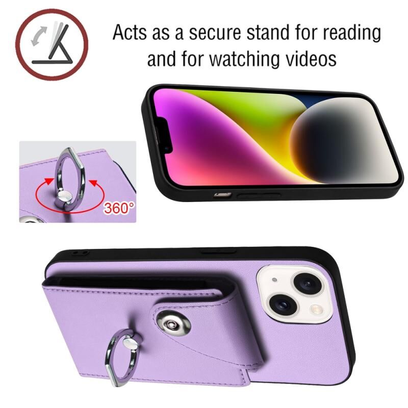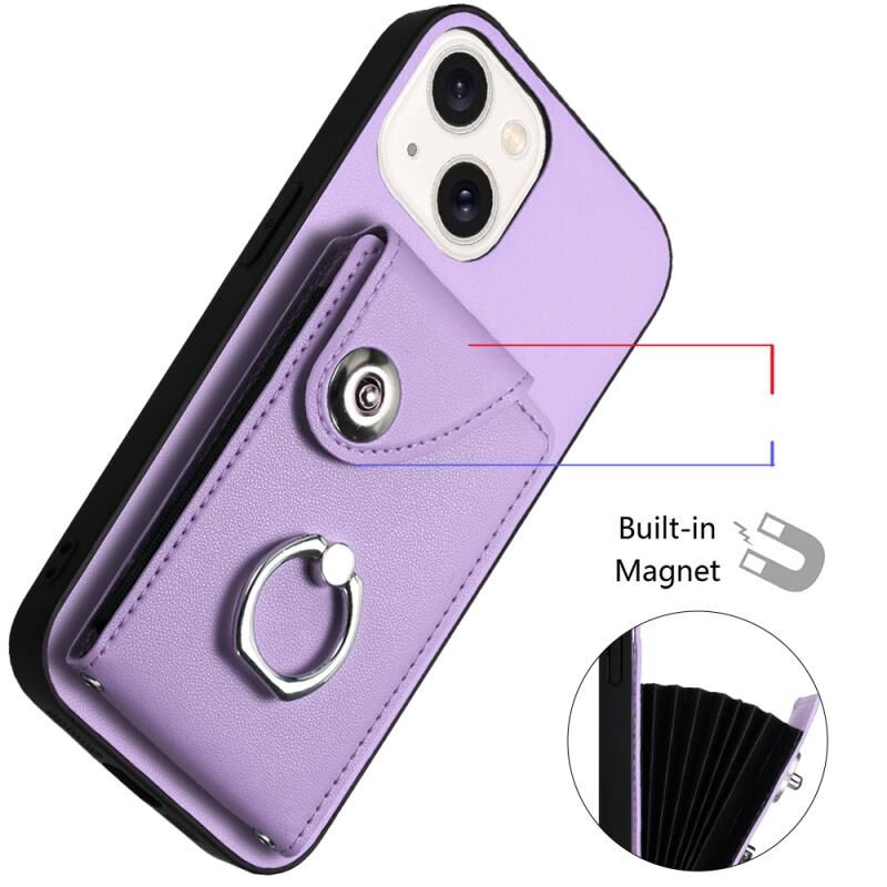 For iPhone 13 Organ Card Bag Ring Holder Phone Case with Long Lanyard(Purple)