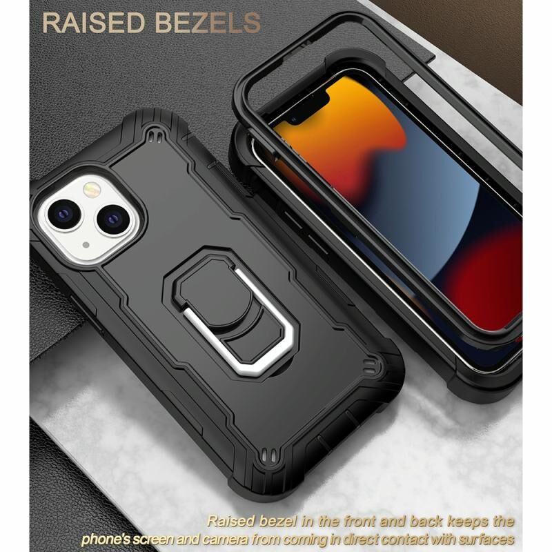 For iPhone 13 PC + Rubber 3-layers Shockproof Protective Case with Rotating Holder(Black)