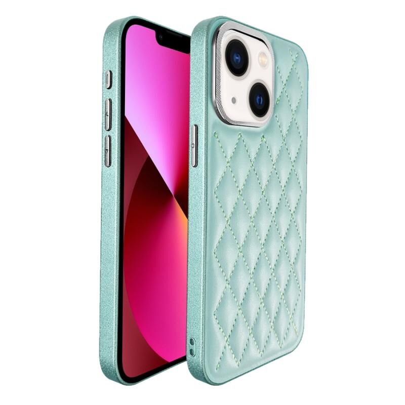 For iPhone 13 Plaid Series 9D Electroplated Phone Case(Cyan-blue)