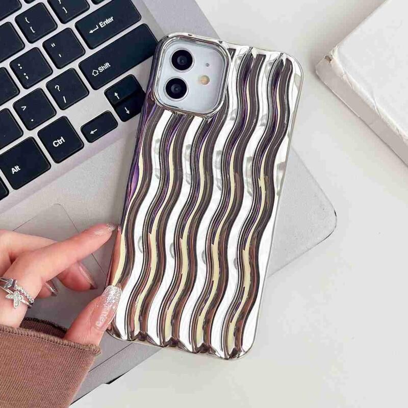 For iPhone 13 Plating 3D Water Wave Texture Phone Case(Silver)