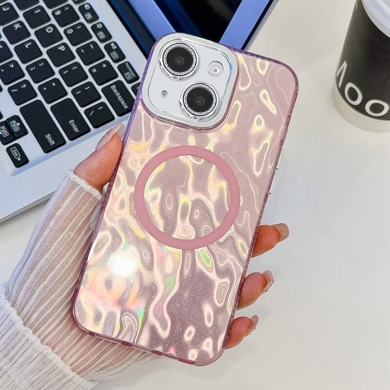 Θήκη τηλεφώνου TPU με επιμετάλλωση, υφή και MagSafe για iPhone 13 με προστατευτική μεμβράνη φακού με γκλίτερ (Λευκά Κύματα Νερού)