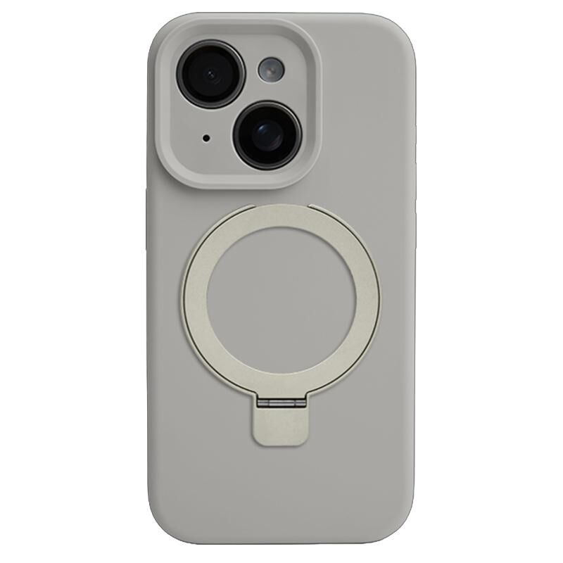 For iPhone 13 Precision Hole Liquid Silicone MagSafe Metal Ring Holder Phone Case(Rock Grey)