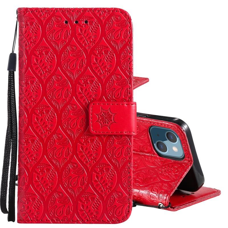 Θήκη για iPhone 13 με ανάγλυφο σχέδιο λουλουδιών από ρατάν, οριζόντια, από δερματίνη PU με βάση στήριξης, θήκες για κάρτες, πορτοφόλι & κορνίζα φωτογραφιών (Μπλε)