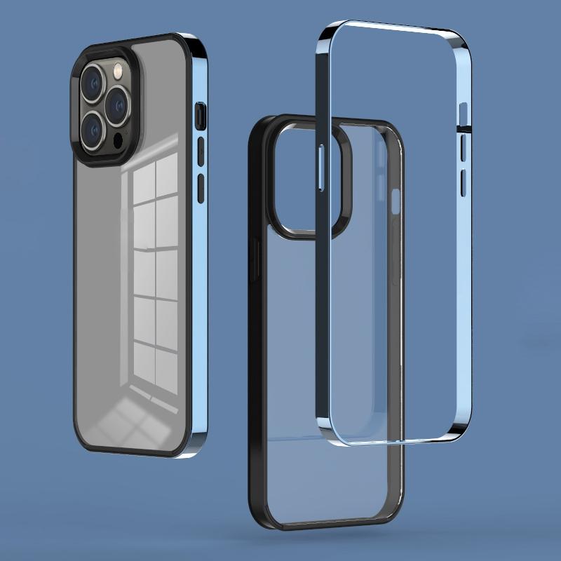For iPhone 13 Pro 3 in 1 Electroplated Frame Phantom Phone Case (Sierra Blue)