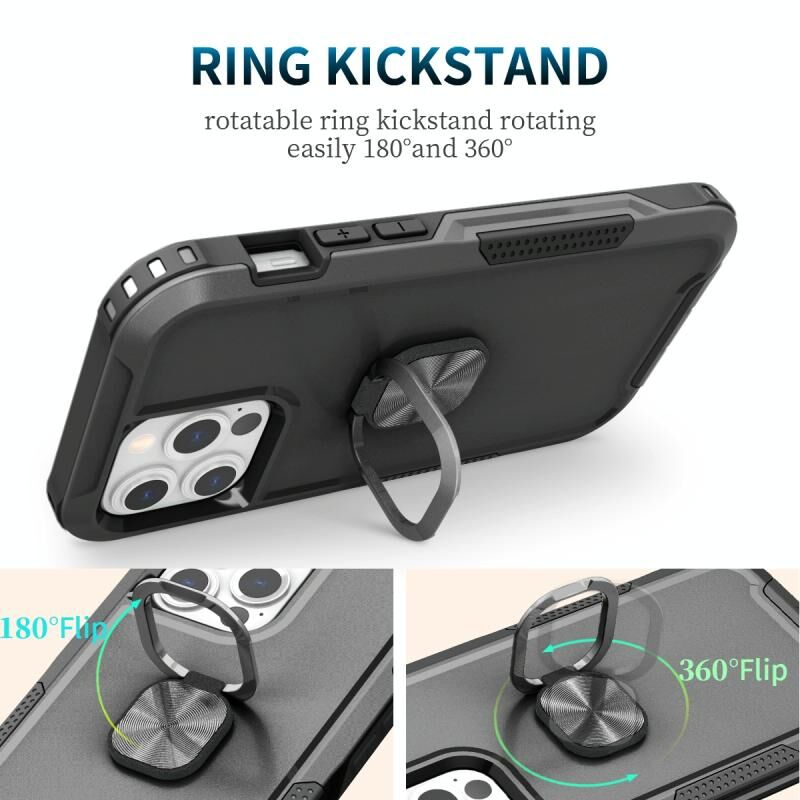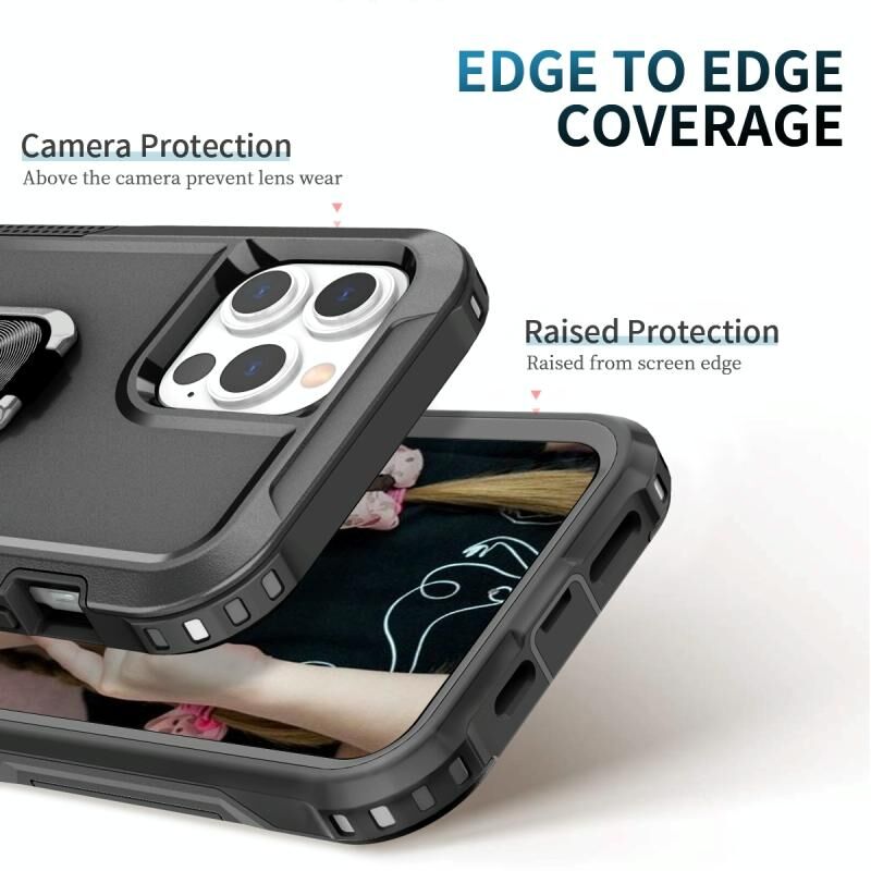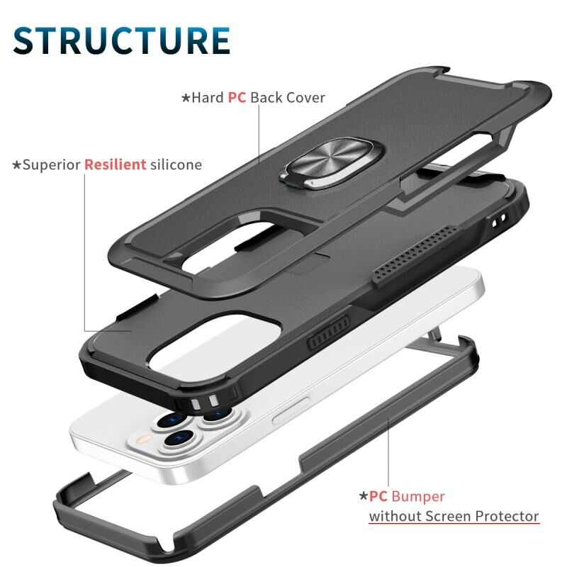 For iPhone 13 Pro 3 in 1 PC + TPU Phone Case with Ring Holder (Black)