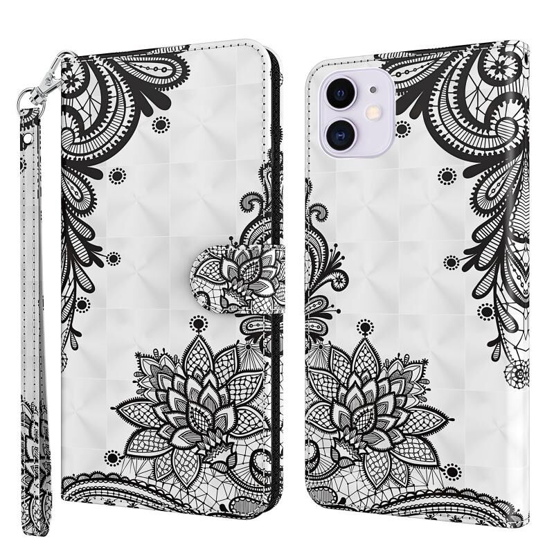 For iPhone 13 Pro 3D Painting Pattern Horizontal Flip TPU + PU Leather Case with Holder & Card Slots & Wallet (Diagonal Black Flower)