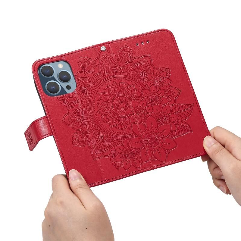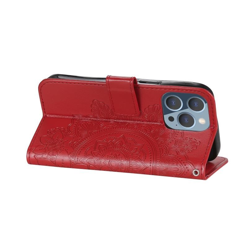 For iPhone 13 Pro 7-petal Flowers Embossing Pattern Horizontal Flip PU Leather Case with Holder & Card Slots & Wallet & Photo Frame (Red)