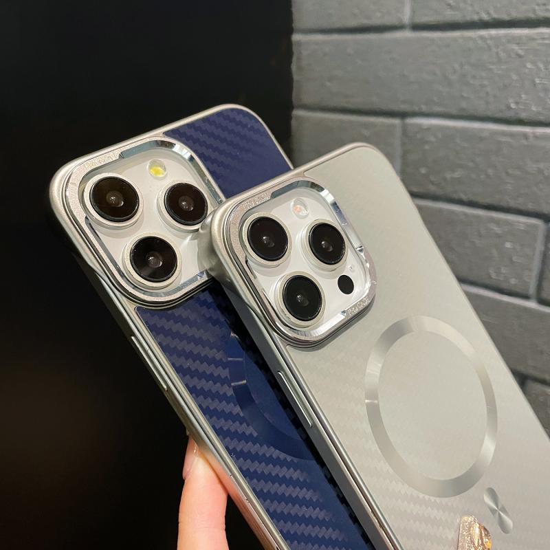 For iPhone 13 Pro AG Carbon Fiber Frameless MagSafe Phone Case(Blue)