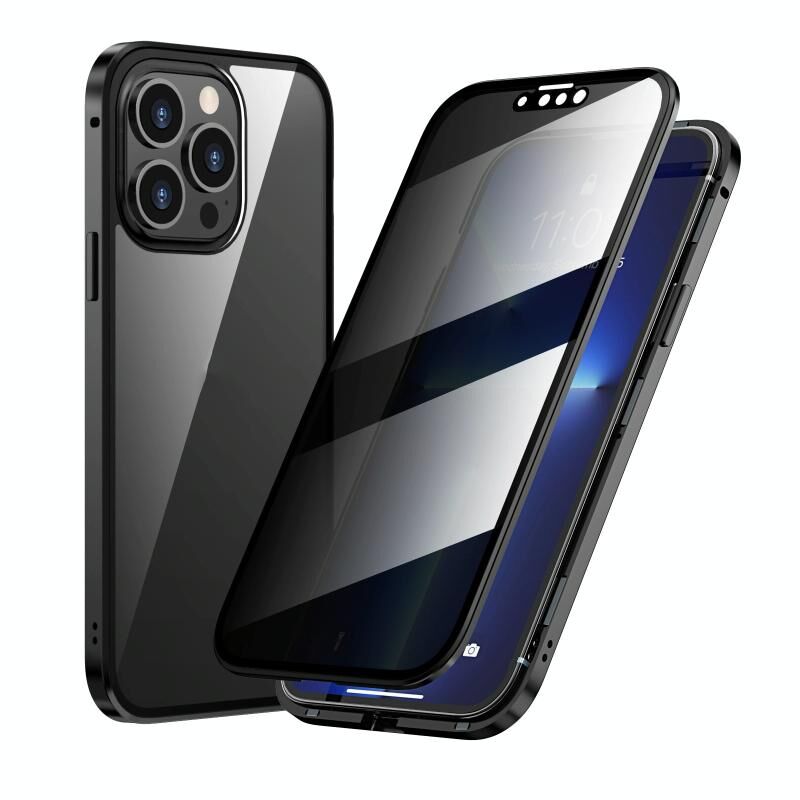 For iPhone 13 Pro Anti-peeping Magnetic Metal Frame Double-sided Tempered Glass Phone Case (Black)
