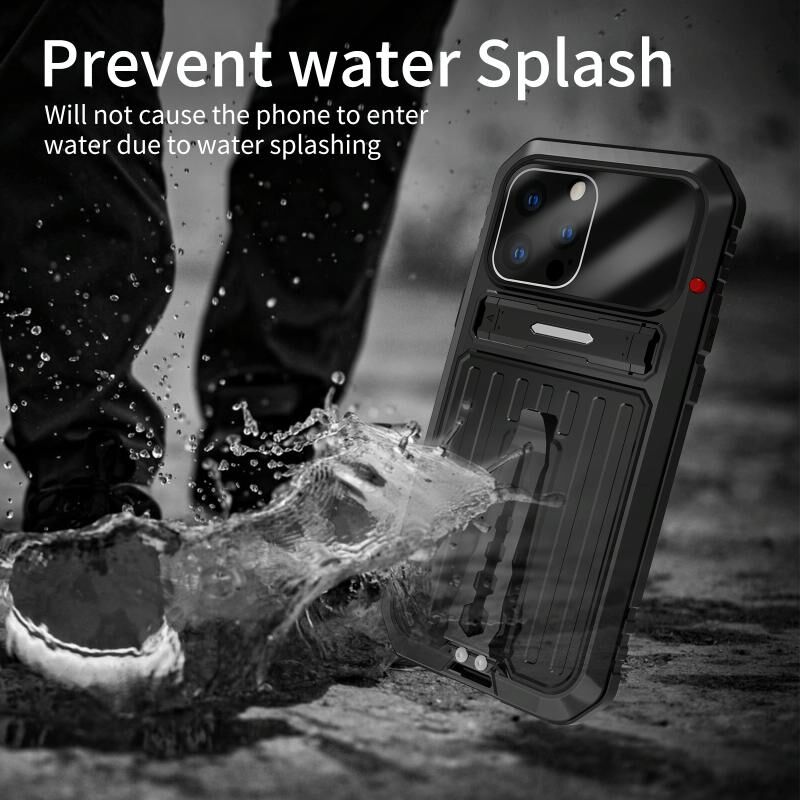 For iPhone 13 Pro Armor Shockproof Splash-proof Dust-proof Phone Case with Holder (Black)