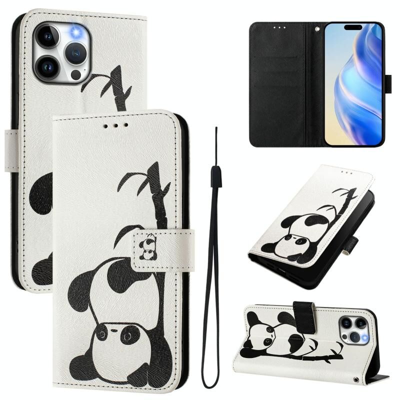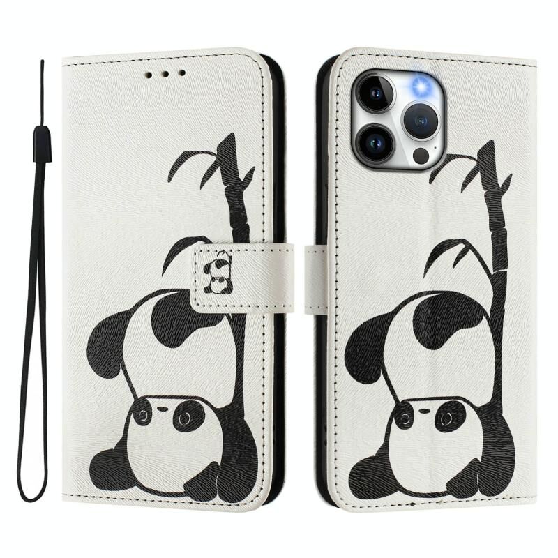 For iPhone 13 Pro Art Colored Drawing Pattern Leather Phone Case(Panda)