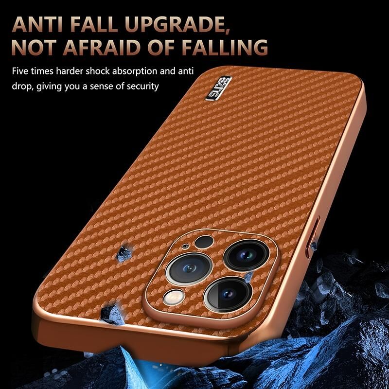 For iPhone 13 Pro AZNS Electroplated Edge Carbon Fiber Texture Phone Case(Brown) (AZNS)