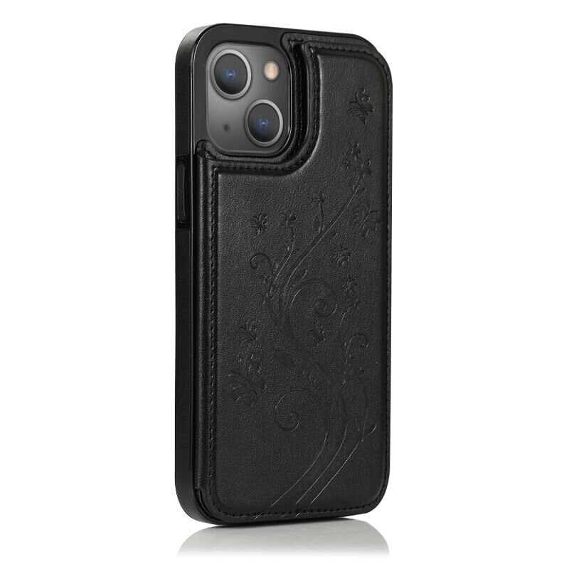 For iPhone 13 Pro Butterflies Flowers Double Buckle PU + TPU Protective Case with Holder & Card Slots & Photo Frame (Black)