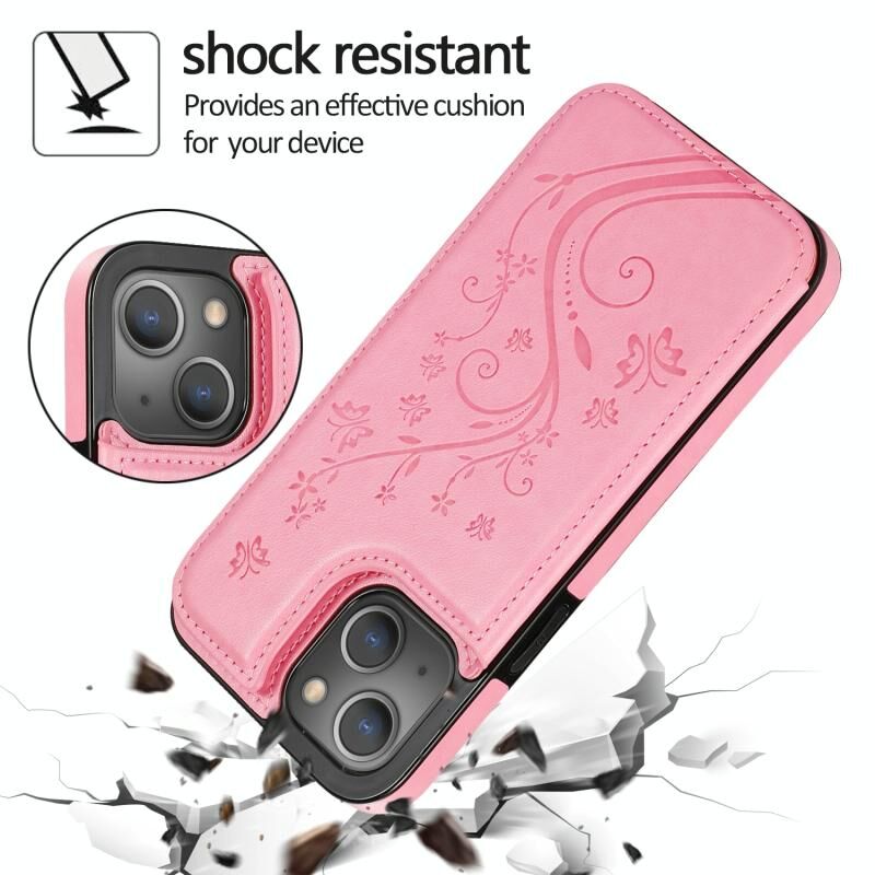 For iPhone 13 Pro Butterflies Flowers Double Buckle PU + TPU Protective Case with Holder & Card Slots & Photo Frame (Pink)