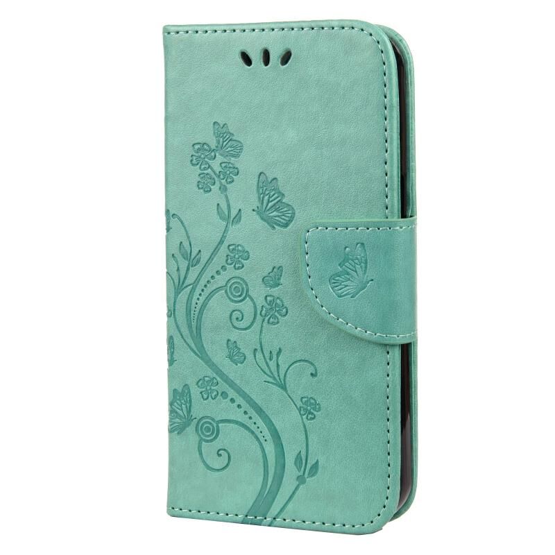 Θήκη δέρματος οριζόντιας αναδίπλωσης για iPhone 13 Pro με σχέδιο πεταλούδας και λουλουδιών, με βάση στήριξης & υποδοχές καρτών & πορτοφόλι (Ανοιχτό Μωβ)
