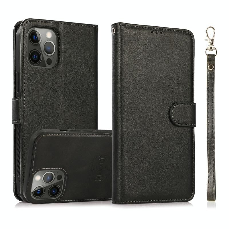 For iPhone 13 Pro Calf Texture 2 in 1 Detachable Magnetic Back Cover Horizontal Flip Leather Case with Holder & Card Slots & Wallet & Photo Frame (Black)