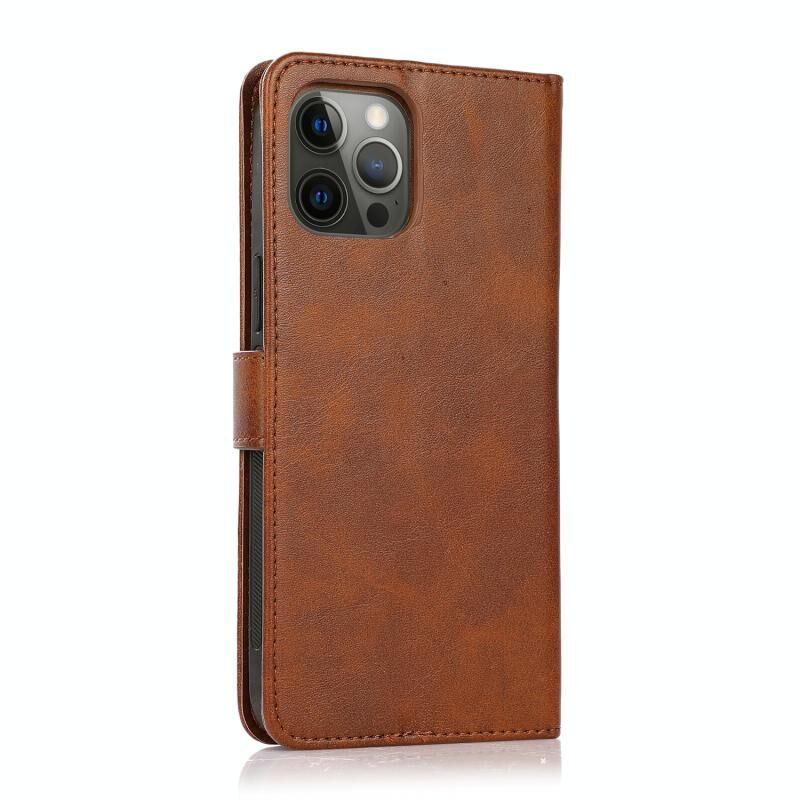 For iPhone 13 Pro Calf Texture 2 in 1 Detachable Magnetic Back Cover Horizontal Flip Leather Case with Holder & Card Slots & Wallet & Photo Frame (Brown)