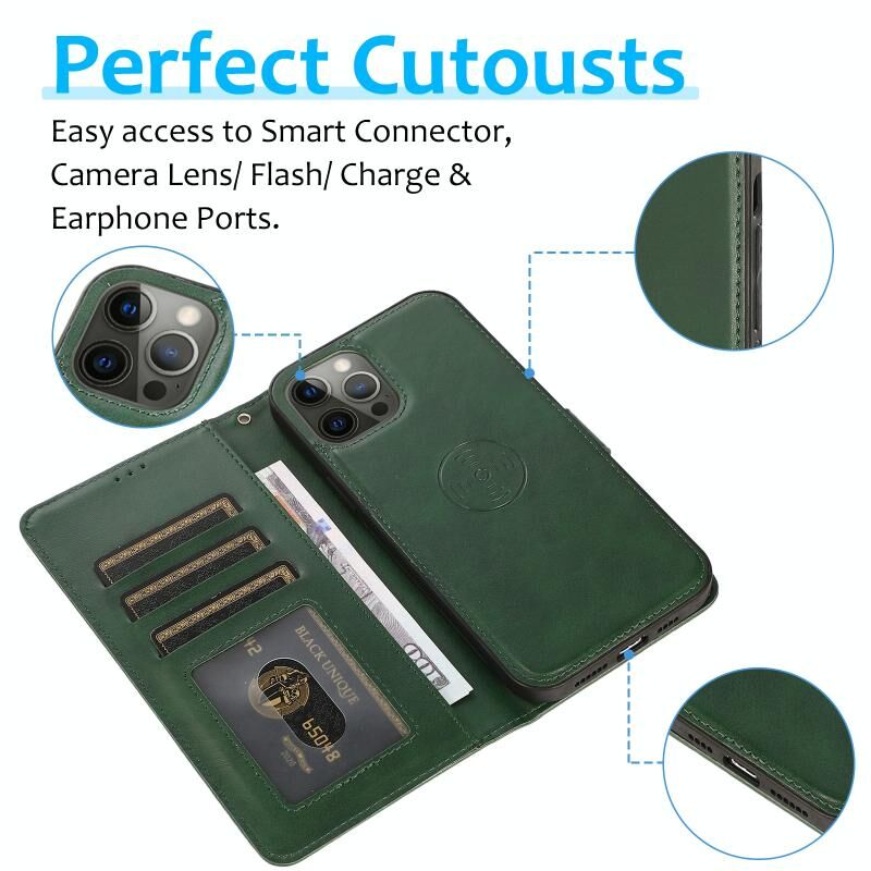 4. Multifunctional design, card slots, wallet, holder, detachable magnetic protective back cover.