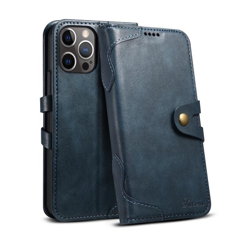 For iPhone 13 Pro Calf Texture Buckle Horizontal Flip Leather Case with Holder & Card Slots & Wallet (Blue)