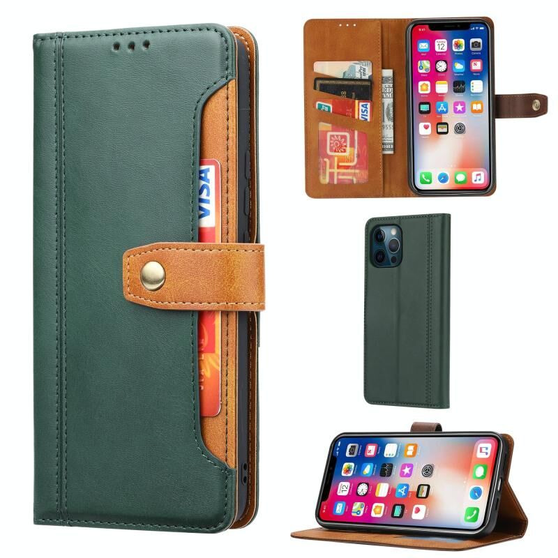For iPhone 13 Pro Calf Texture Double Fold Clasp Horizontal Flip Leather Case with Photo Frame & Holder & Card Slots & Wallet (Green)