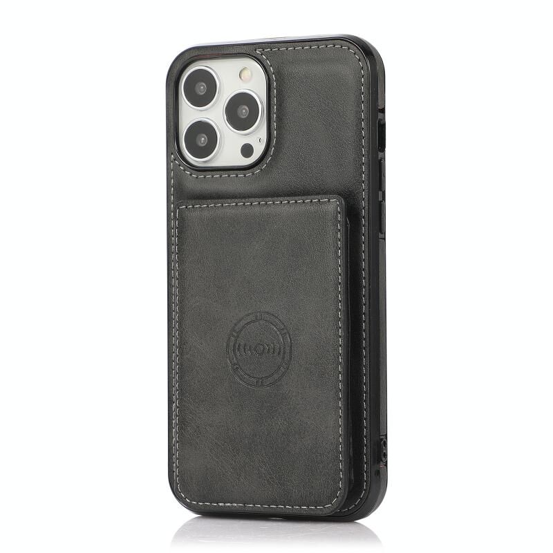 For iPhone 13 Pro Calf Texture Magnetic Card Bag PU Shockproof Case with Holder & Card Slot (Black)