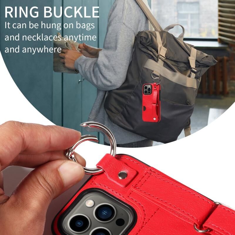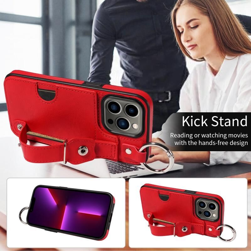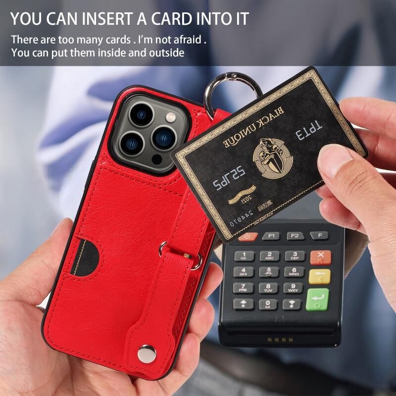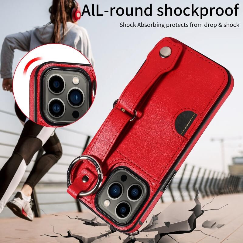 For iPhone 13 Pro Calf Texture Wrist Card Slot Ring Phone Case(Red)