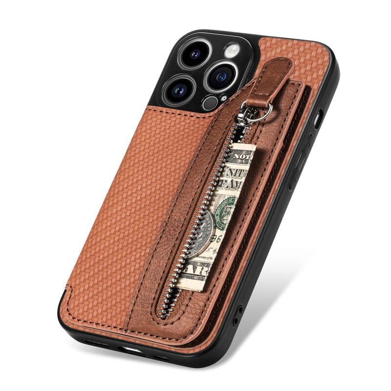 Θήκη τηλεφώνου τύπου πορτοφολιού με οριζόντιο άνοιγμα και φερμουάρ από ανθρακονήματα για iPhone 13 Pro (Μαύρο)