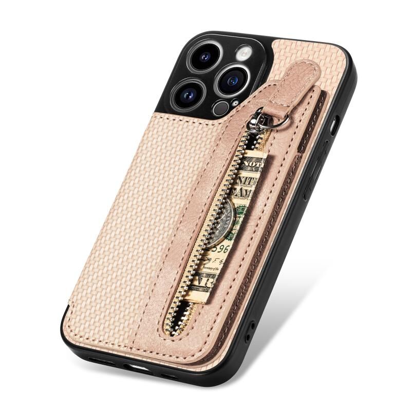 Θήκη τηλεφώνου τύπου πορτοφολιού με οριζόντιο άνοιγμα και φερμουάρ από ανθρακονήματα για iPhone 13 Pro (Μαύρο)