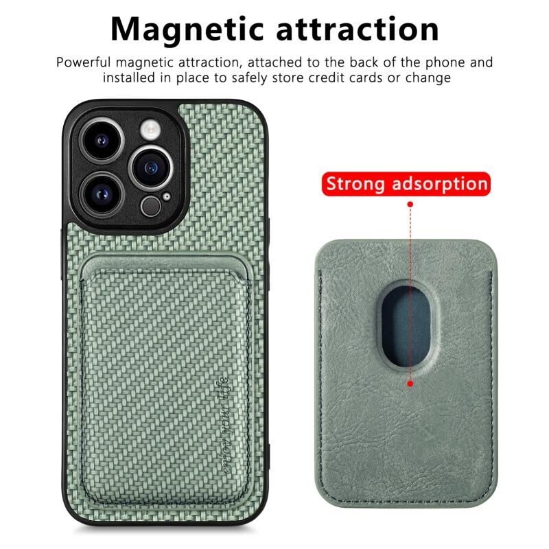 Θήκη τηλεφώνου MagSafe μαγνητική από ανθρακονήματα και δέρμα για iPhone 13 Pro (Μαύρο)