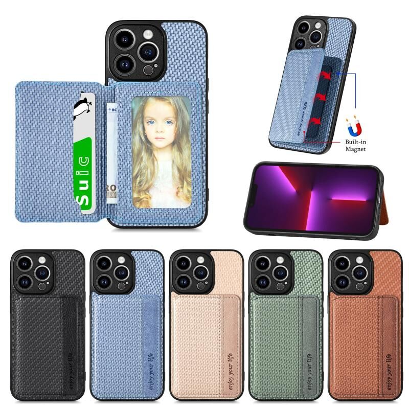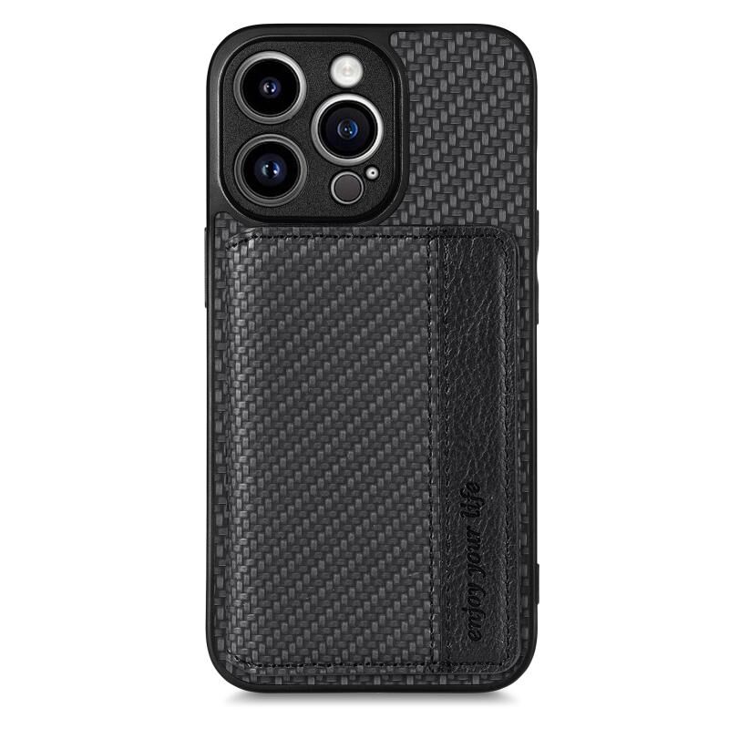 Θήκη τηλεφώνου με μαγνητική τσέπη για κάρτες από ανθρακονήματα για iPhone 13 Pro (Μαύρο)