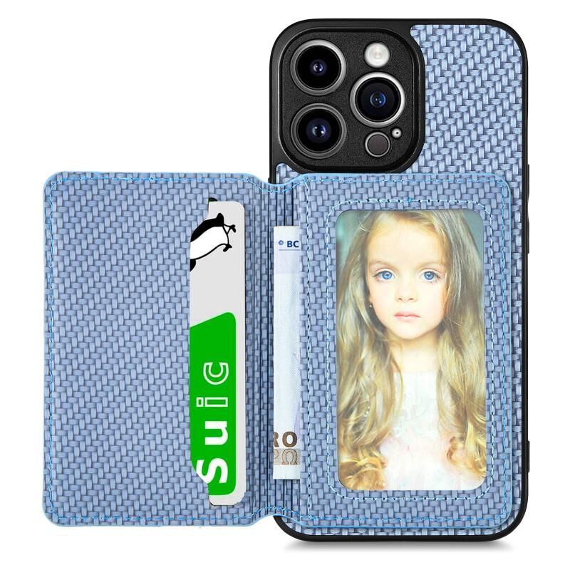 Θήκη τηλεφώνου με μαγνητική τσέπη για κάρτες από ανθρακονήματα για iPhone 13 Pro (Μαύρο)