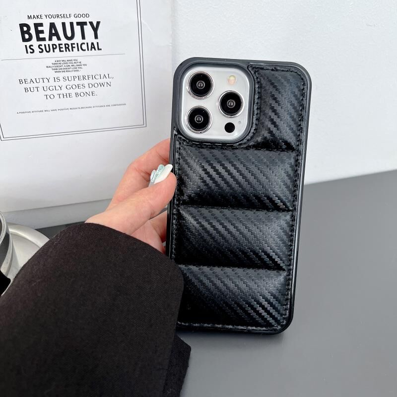 Θήκη τηλεφώνου για iPhone 13 Pro με υφή ανθρακονήματος, πουπουλένιο μπουφάν (Μαύρο)